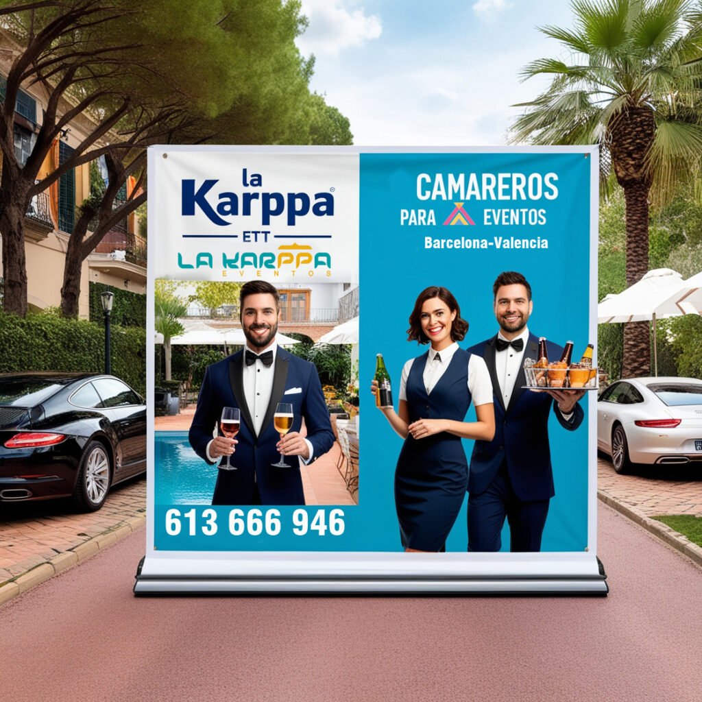 Organización, planificación y catering para eventos, a diseño de colocación de mesas en plano, montaje de mesas y bar de eventos, servicio de buffet, azafata de congresos y ferias. Para eventos privados que organiza la karppa, posibilidad de porteros y auxiliares de seguridad